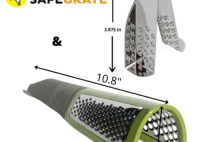 Graters are time proven valuable tools for meal preparation but I was getting frightened to use mine. The last time I cut myself I got so mad that I applied both time and heart to developing the SAFEGRATE™ kitchen tool ensuring never again would anyone cut themselves using a grater.