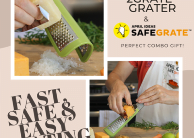 • BUNDLE INCLUDES: April Ideas 2GRATE Grater and SAFEGRATE Finger Protector that work together to easily grate any sized food for fine or coarse size particles conveniently with one tool with no more knuckle/finger/nail cuts.
